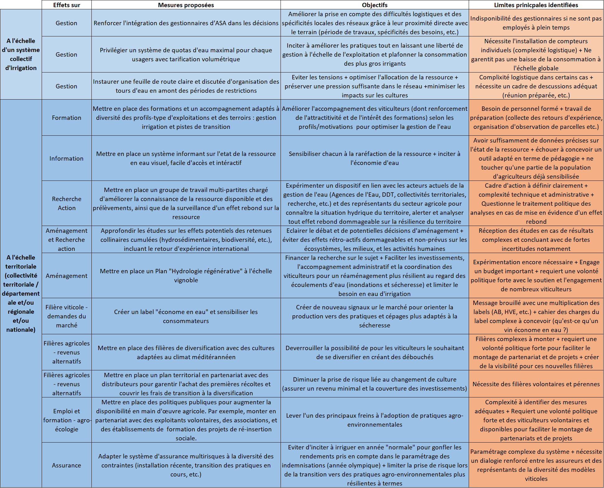 Sur les mesures : Une partie des échanges sera consacrée à la discussion de mesures d’adaptation. Ces pistes de recommandation sont proposées à partir des différents témoignages collectés au cours de l’enquête et concernent :
